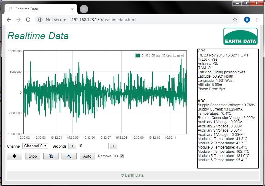 The EDR-217 can be configured and monitored via any standard HTTP web browser, in addition, it can also be configured as a SeedLink server enabling communication with external seismic systems. The internal mass storage media can be employed to store data in Mini-SEED format, or alternatively external mass storage units can be directly connected via USB. The unit supports the FTP and RSYNC protocols should remote users wish to download / synchronize any stored data files.